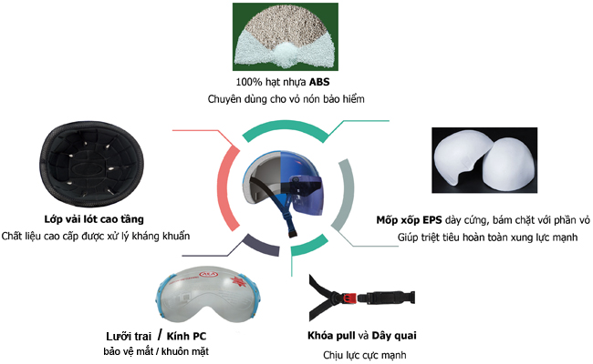 Cấu tạo mũ bảo hiểm đạt chất lượng